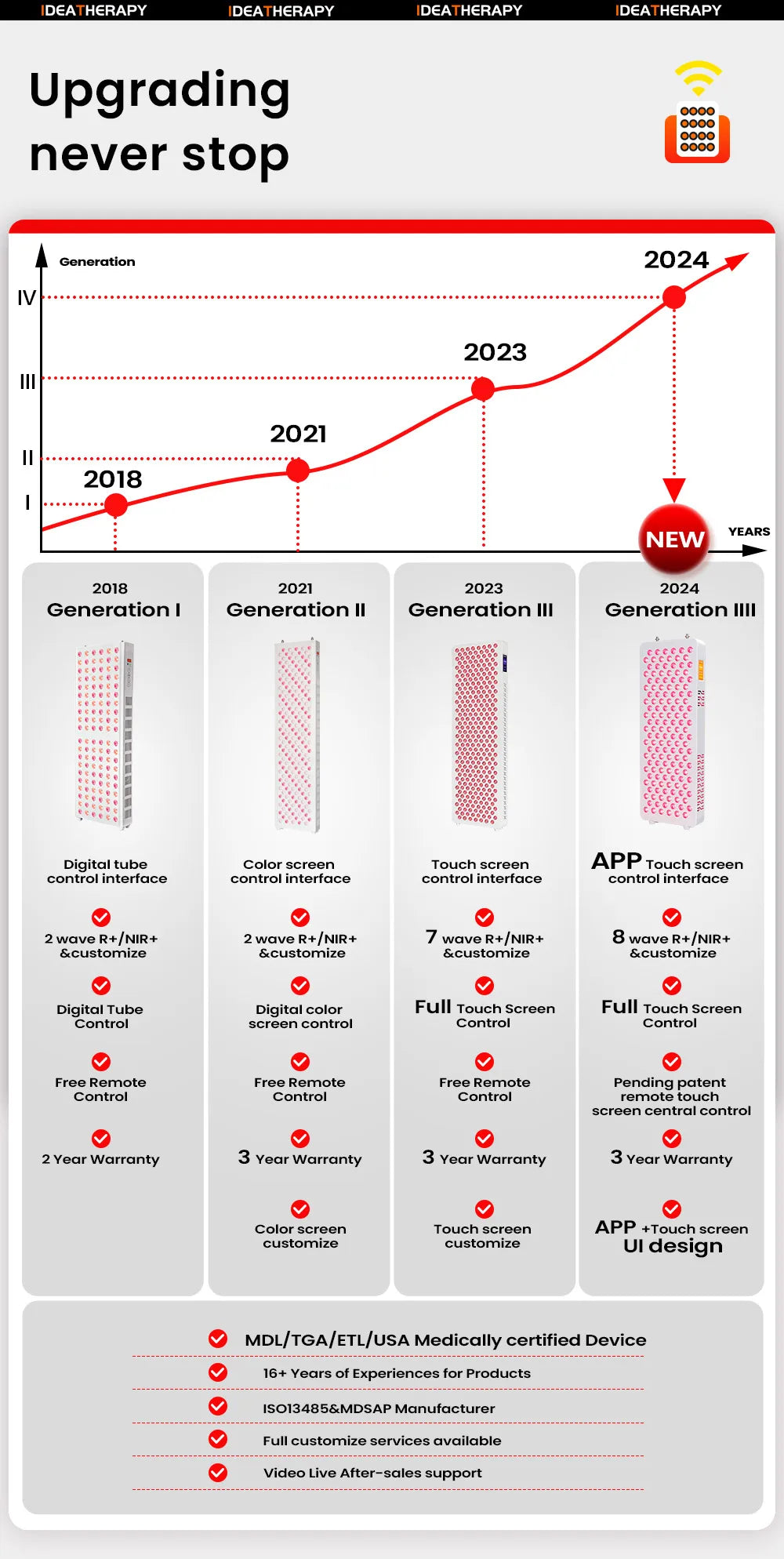 9 Wavelength LED Light Therapy APP Touch Screen Red Near Infrared Light 480, 590, 630,660, 670, 810, 830, 850,1060nm with stand